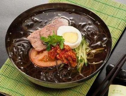 【原料】荞麦冷面1包,酱牛肉一块,泡菜1小碗,黄瓜一段,熟鸡蛋1个,苹果或梨,牛肉汤,白醋适量,牛肉粉,糖适量,盐适量,生抽适量,辣椒油,熟芝麻适量。