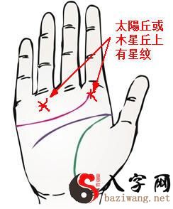 太阳丘或木星丘上面有星纹